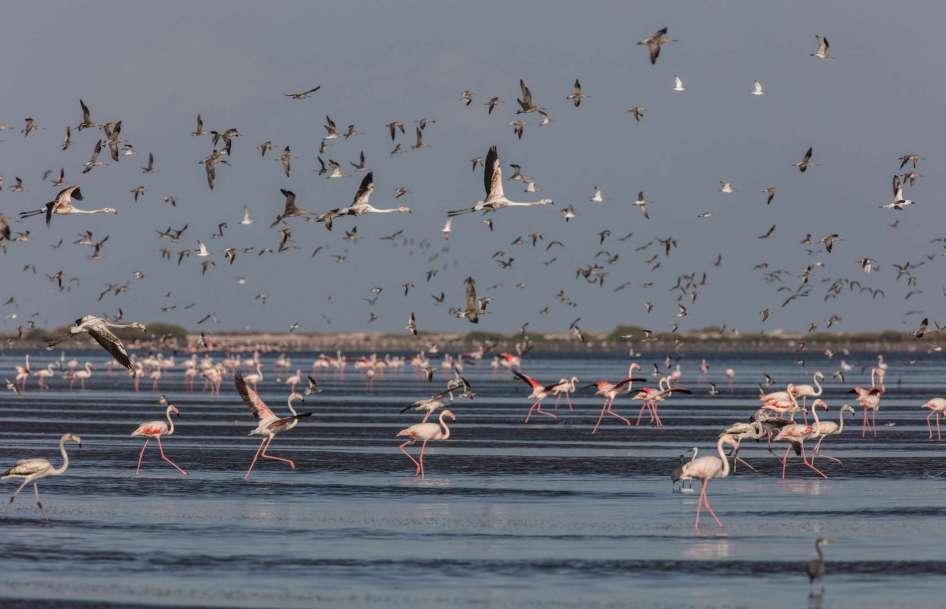 Mahout District (pop. 17,385) is located in the northeastern coastal area of Al-Wusta region, on the Indian Ocean. The district is primarily made up of small fishing villages, and is known for its beautiful coasts and diverse wildlife. The area is well-known for its rich fishing, and is home to the Barr al-Hikman Wetland Nature Reserve–a mud and salt flat that is home to nearly half a million migratory birds in winter. This area also has the largest coral reefs in Oman, and a diverse population of fish, whales, turtles, and other marine life. The area is growing in its ecotourism, and sea-diving and kite-surfing are popular sports here.